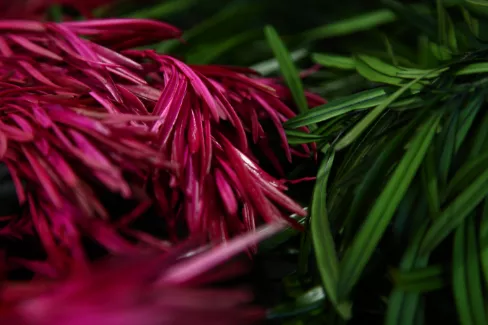 また、nociのプロダクトは、石油を素材とする造花のように静電気や埃をため込まず、アレルゲンも含まないため、医療機関や精密機器のある空間でも安心して飾ることができます。さらに、自然には存在しない色を纏わせることも可能なため、空間演出の素材として、またアート作品の素材として、植物がもつ時間と美の可能性を拡張することができます。